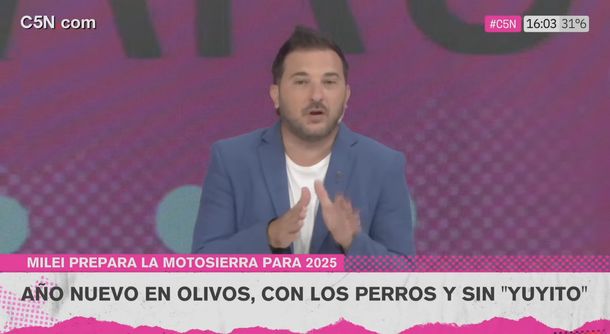"En Olivos están preparando el vitel toné, las milanesas, pero sin papas fritas... Pasa el Año Nuevo con los perros y sin Yuyito", indicó el periodista que ofició de conductor del programa de C5N, en relación a la celebración del mandatario.