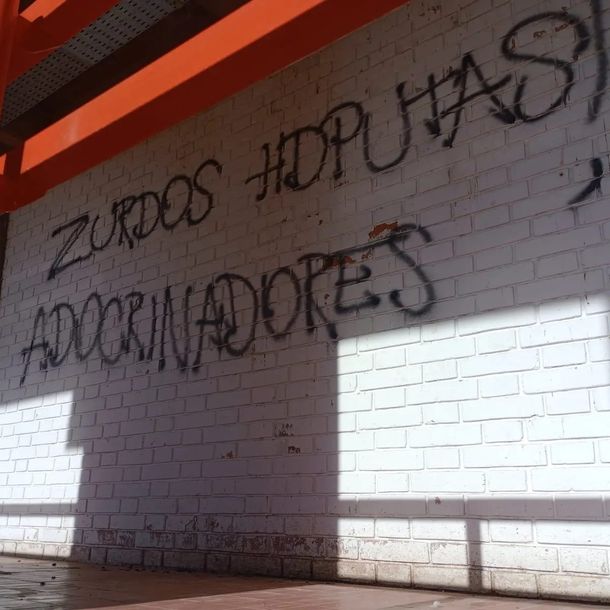 "No les importa el país! Solo quieren carguitos, delincuentes", "Se les termina la joda, roñosos", "Chau parásitos, progres y feminazis!", "Milei 2023! Zurdos de mierda!", "No enseñan, adoctrinan" y "Antro marxista", son algunos de los mensajes estampados en las paredes de la casa de estudios ubicada en Mendoza.