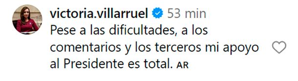 Villarruel, a quien se la ve sonriente en la foto, no dudó en responder: “Pese a las dificultades, a los comentarios y a terceros, mi apoyo al Presidente es total”.