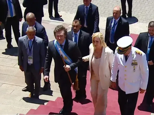 El presidente Javier Milei ingresó pasadas las 13.20 por primera vez como jefe de Estado a la Casa Rosada, luego de jurar el cargo ante la Asamblea Legislativa.
