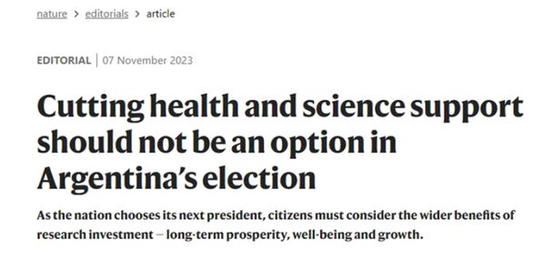 El medio internacional hizo hincapié en la situación electoral de Argentina y aseguraron que "si es elegido, Milei planea un cambio radical del financiamiento de la ciencia, el ambiente, la salud y la educación. Su objetivo es recortar los gastos del muy endeudado gobierno argentino en un 15% del Producto Bruto Interno (PBI)".