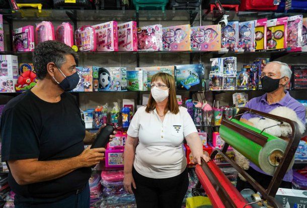 A posteriori, Macri visitó a María Eba Herbel, que es dueña de la juguetería, librería y marroquinería “JJ TOYS”, otro rubro que durante la cuarentena se mantuvo cerrado, por lo que incorporó la venta por WhatsApp para poder seguir adelante.