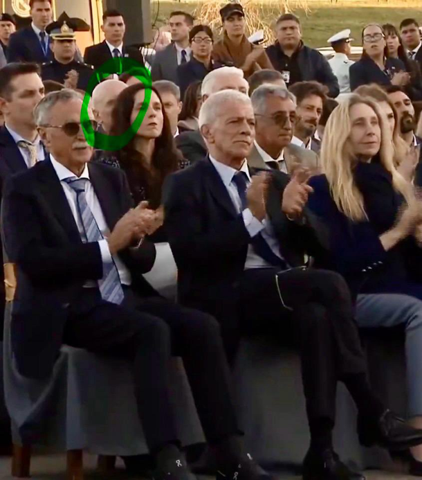 El "Profe", como suele llamarlo Milei, apareció recién en la tercera fila, incluso detrás de varias personas ajenas al Gobierno.