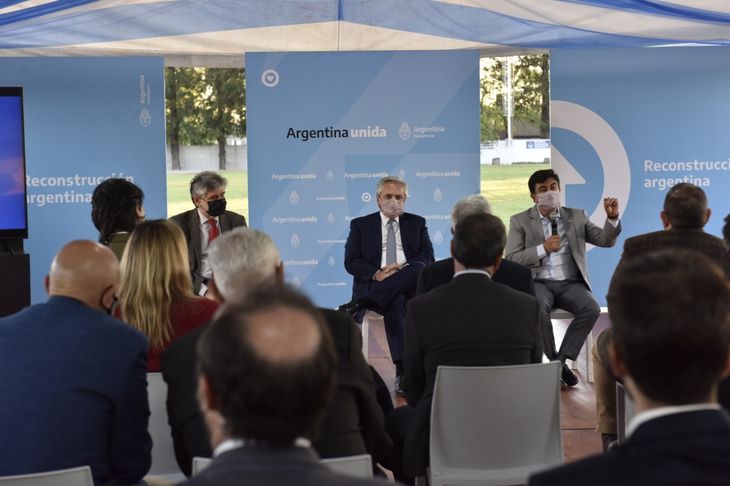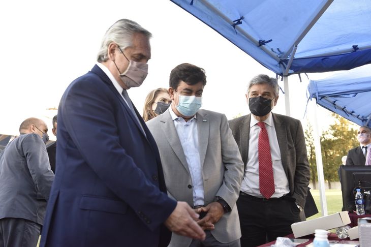 El intendente de La Matanza, Fernando Espinoza, junto al presidente de la Nación, Alberto Fernández; el ministro de Ciencia y Tecnología de la Nación, Daniel Filmus; la secretaria de Educación de la Nación, Silvina Gvirtz; el presidente de la Agencia Nacional de Promoción de la Investigación, el Desarrollo Tecnológico y la Innovación, Fernando Peirano, y la secretaria de Producción, Débora Giorgi, realizaron la firma de convenio para la construcción del Polo Tecnológico de la Innovación La Matanza, en Ciudad Evita.
