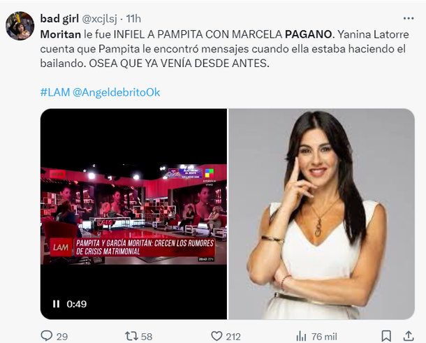 En medio de versiones de infidelidad, en LAM revelaron que el motivo por el que Pampita y Roberto García Moritán habrían decidido ponerle fin a su matrimonio.