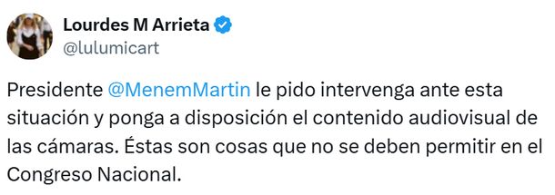 En relación a su solicitud, Laura Oriolo, secretaria administrativa de la Cámara de Diputados, respondió que "se instruyó el resguardo de los registros fílmicos" tanto del recinto como de los pasillos en caso de que haya un requerimiento judicial.