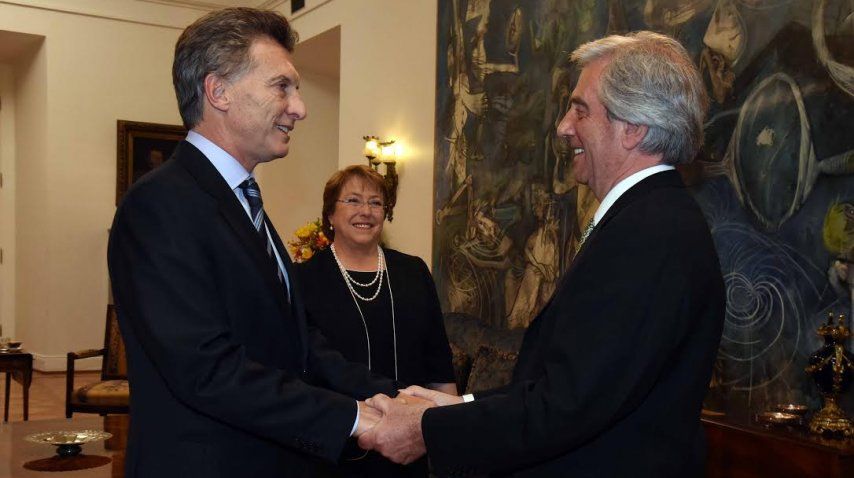 Durante su encuentro con Bachelet, Macri tuvo la oportunidad de saludar al presidente de Uruguay, Tabaré Vázquez, que también se encuentra de visita en Chile.