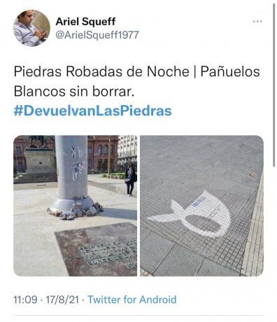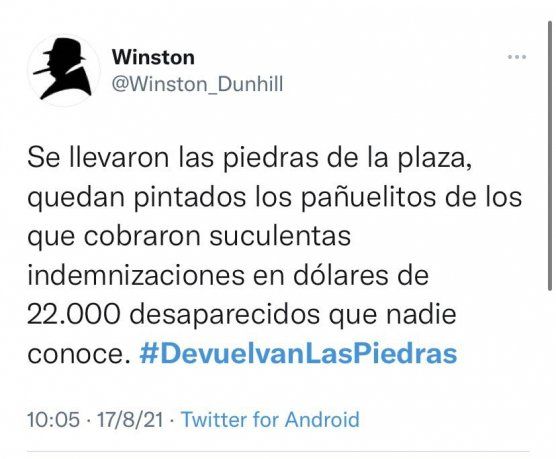 En esta ocasión se pudieron leer en esa tendencia varios comentarios negacionistas y que atacaban a las Madres y Abuelas de Plaza de Mayo, en donde sostenían que si no devolvían las piedras iban a borrar los pañuelos de la plaza, algo que hizo Mauricio Macri durante su mandato y que nada tiene que ver con el dolor de las familias que perdieron un familiar o conocido por el coronavirus.