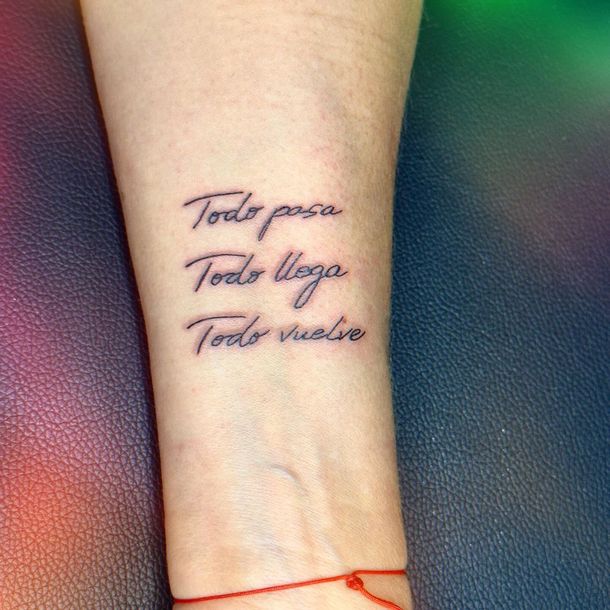 En una de las fotos se puede ver que el ramo está ubicado en el tórax de la mujer de Sergio Massa, mientras que en otra imagen se ve el segundo tatuaje que se hizo en la misma sesión, donde se puede leer la frase "todo pasa, todo llega, todo vuelve", como un mantra para los años venideros.