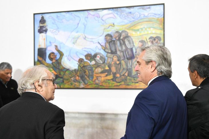"Que la Argentina recupere su integridad territorial es una prioridad absoluta. Que en el siglo XXI estemos discutiendo el colonialismo debería avergonzarnos", señaló el jefe de Estado durante la actividad en la cual se descubrió una obra de Pérez Esquivel en la escalera Carpani de la Casa Rosada.