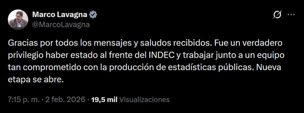 Marco Lavagna agradeció los mensajes de apoyo y destacó su paso por el Indec