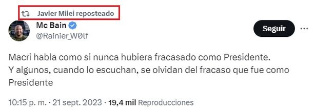 El tuit en cuestión decía: “Macri habla como si nunca hubiese fracasado como presidente”.