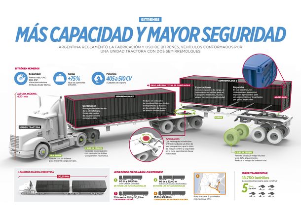 Sobre la nueva normativa, Sturzenegger detalló: "Por ello la nueva norma da un giro conceptual de 180°. A partir de ahora los bitrenes podrán transitar libremente por el 100% de la red, sin diferenciar por tamaño. Solo se requerirá permiso en unas pocas curvas muy pronunciadas (son 55 curvas en rutas montañosas de Salta, Jujuy y Tucumán -y una en Chubut-) donde las curvas obligarían a cortar el tránsito para acomodar el radio de giro".