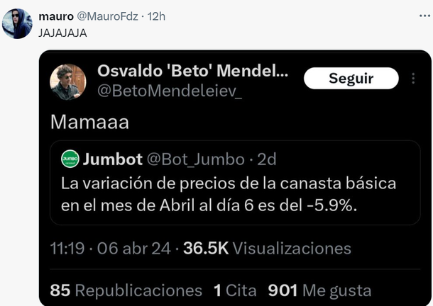 Luego de reconocer el "bot de Jumbo" que nunca hizo un control de precios, ahora le toma el pelo a Caputo sobre todo, en las redes sociales, que estallaron con este papelón inexplicable.