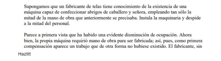 Entre las columnas, la primera en publicarse -en abril de 2016, en Infobae- fue titulada “Tecnología, empleo y la falacia ludista”. Allí se pueden encontrar párrafos que coinciden textualmente con el capítulo “El odio a la máquina” del libro La economía en una lección de Henry Hazlitt (1894-1993).