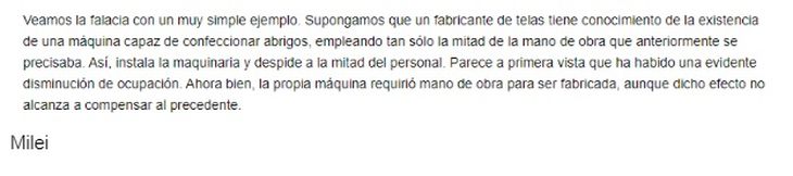 Esta aclaración, además, se incorporó a todas las columnas disponibles en el sitio web del diario, acompañado por un descargo de Milei. El economista señaló que “las notas en diarios son notas de divulgación vinculadas a un tema de la coyuntura, en las cuales por practicidad no se suele hacer las citas”.