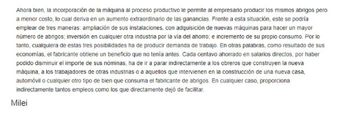 Se identificaron columnas de Javier Milei con fragmentos textuales de otros autores y sin referencia a ellos