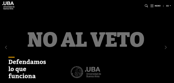 Lo cierto es que al ingresar en www.uba.ar, inmediatamente, el dominio cambia a www.noalveto.uba.ar y la primera imagen que se puede ver tiene fondo negro con letras blancas que dicen "NO AL VETO" y contiene el logo de la Universidad de Buenos Aires. Esto despertó la furia libertaria, razón por la cual desde el Gobierno acusaron a las autoridades de la entidad por colocar "contenido de carácter político partidario".