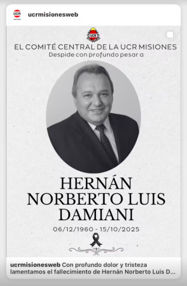 Quién era Hernán Damiani, el histórico dirigente radical de Misiones que murió un streaming en vivo