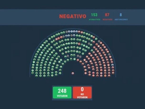 El cambio de postura de varios diputados fue clave para alcanzar el resultado de este miércoles: hubo 153 votos a favor de mantener la ley, 87 en contra -y, por lo tanto, a favor del veto presidencial- y 8 abstenciones, lo que dejó "cortos" a quienes estaban dispuestos a repeler el veto presidencial.