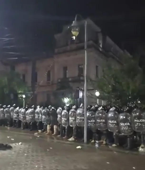 En la noche del lunes un grupo de efectivos de la Policía de Jujuy y sus familiares se manifestaron en Plaza Belgrano, frente a la Casa de Gobierno, para protestar contra el aumento de salarios dispuesto por el Ejecutivo jujeño. Tras varias horas, la protesta comenzó a degenerar y terminó em incidentes con pirotecnia y ataques a la estructura del edificio sede del Ejecutivo.