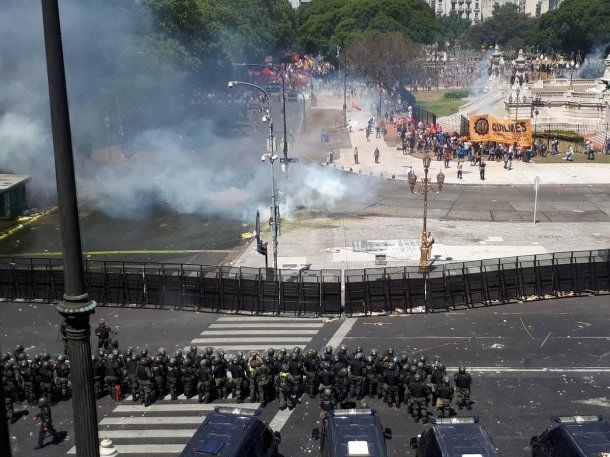 Gendarmería lanzó balas de goma, piedras y camiones hidrantes contra los manifestantes que se encontraban en las inmediaciones del Congreso donde se debatía en una sesión especial la reforma previsional.