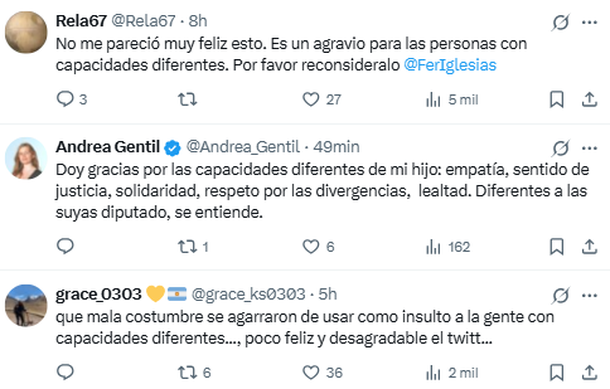 Además de estos comentarios, hubo muchos otros repudiando la burla del diputado a las personas con discapacidad.