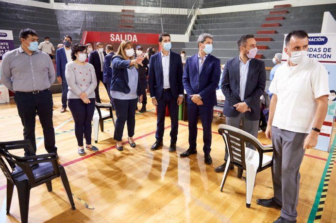 El ministro del Interior recorrió junto al gobernador de San Juan el centro de vacunación y llamó a todos a seguir cuidándose ante el fuerte aumento de casos positivos.