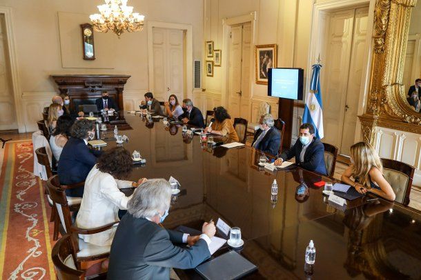 Del encuentro, iniciado pasadas las 16.45, en el Salón de los Científicos, participaron junto al mandatario, el jefe de Gabinete, Santiago Cafiero; las ministras de Salud, Carla Vizotti, y de Seguridad, Sabina Frederic; los ministros del Interior, Eduardo de Pedro; de Defensa, Agustín Rossi; de Desarrollo Social, Daniel Arroyo, de Transporte, Mario Meoni; y de Turismo y Deportes, Matías Lammens.