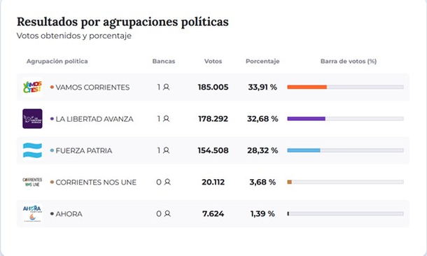 La modelo y ex participante de Bailando por un sueño, recordada también por su relación con el empresario Ricardo Fort, encabezó la lista liberal en su provincia natal. Con el 99,64% de las mesas escrutadas, su espacio obtuvo el 32,68% de los votos, ubicándose en segundo lugar detrás de Vamos Corrientes, que sumó el 33,91%.
