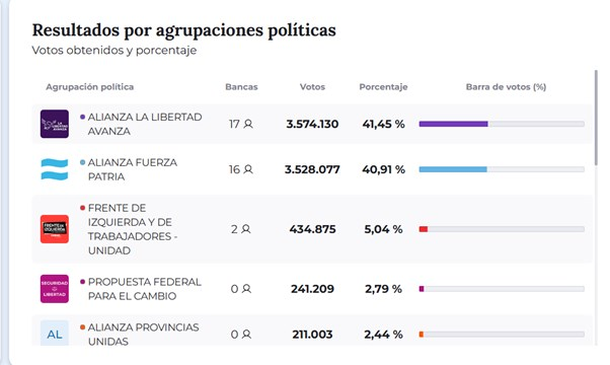 Pese a la diferencia, el sistema de reparto permitió que ambas fuerzas, junto a Fuerza Patria -que alcanzó el 28,32%-, obtuvieran un diputado cada una. De este modo, la exvedette y panelista de televisión asumirá formalmente su banca el próximo 10 de diciembre.