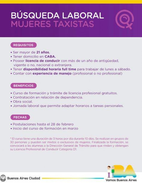 El gobierno de la Ciudad de Buenos Aires abrió una convocatoria para incorporar mujeres a su flota de taxistas. La iniciativa forma parte de una política de género en el sistema de transporte público.