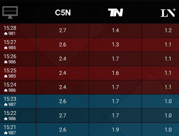 Pero Rial en C5N no solo le gana a su competencia natural, el resto de las señales de noticias, también a los canales de aire y ya es habitual ver en la grilla a Argenzuela en el tercer lugar.