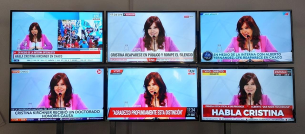 El discurso de Cristina Kirchner en Chaco lo pasan todos los canales de noticias, salvo el de Macri, La Nación, que prefiera entrar y salir.