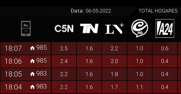 Más 10 puntos entre las señales de noticias, más la TV Pública, es el rating de CFK, que lidera en audiencia C5N.