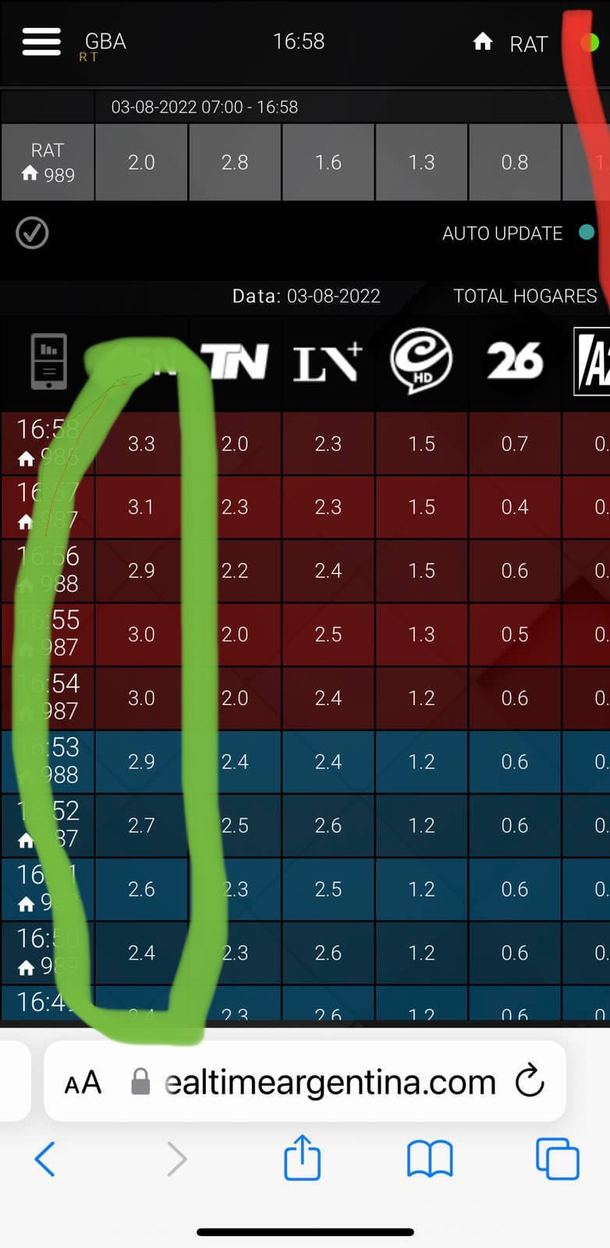 Desde el inicio, midiendo cerca de 3 puntos C5N lideró los canales de noticias con Argenzuela y con el correr de los minutos quedó tercero entre todos los canales, superando a los de aire.