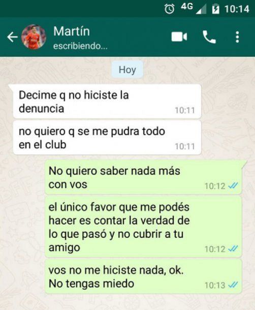 Horas después de la noche en la que se produjo la violación, la joven recibió una serie de mensajes de dos jugadores de Independiente, presentes el día y en el lugar del hecho.