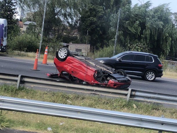 El choque y vuelco fue protagonizado por un automóvil rojo y una camioneta blanca . Según informó AUBASA, el tránsito se ve interrumpido en los carriles 1 y 2, a la altura de la localidad bonaerense de Bernal, kilómetro 18.5, sentido La Plata.