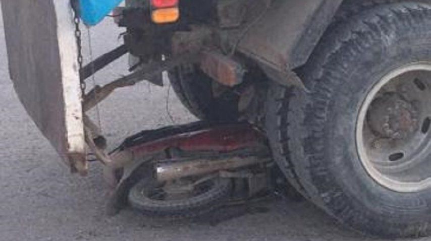 Le pasó un camión por encima de la moto y se salvó
