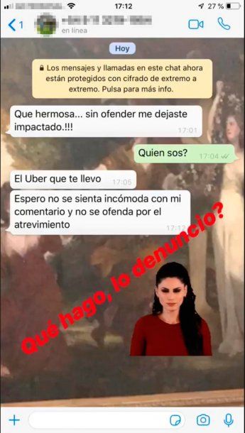 Ante su pregunta “¿Quién sos?”, el chofer respondió: “El Uber que te llevo. Espero no se sienta incómoda con mi comentario y no se ofenda por el atrevimiento”.