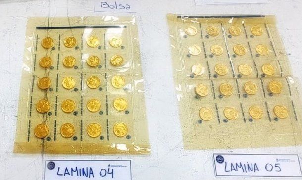 Por orden judicial, los oficiales registraron sus pertenencias y hallaron un total de 420 monedas de metal dorado que fueron secuestradas.
