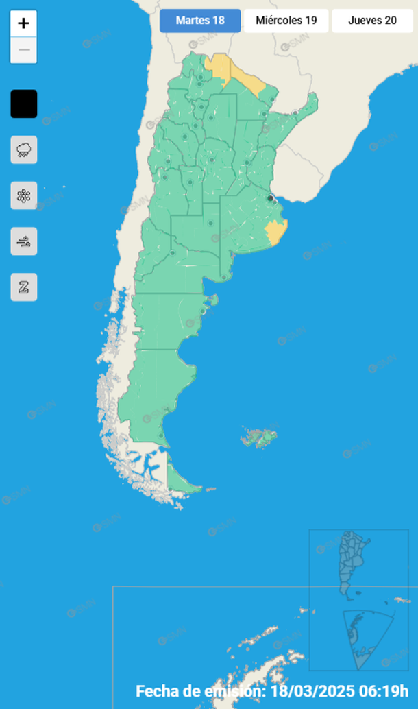 Se trata de un aviso de nivel amarillo que este martes 18 de marzo alcanzaba a zonas de las provincias de Buenos Aires, Formosa, Chaco y Salta.