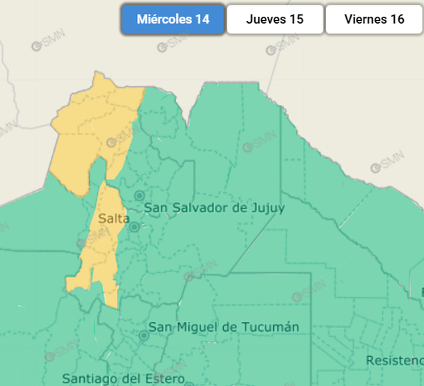Los territorios del país que estarán afectados por la alerta amarilla de este martes son Buenos Aires, Salta, Jujuy, Córdoba, San Luis, Mendoza, La Pampa y Río Negro.