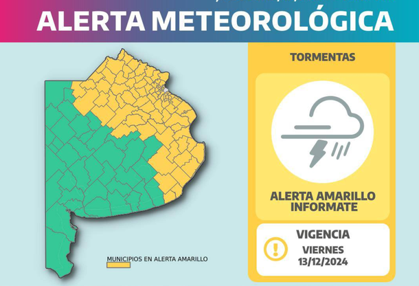 Las tormentas comenzarán durante la madrugada y se prologarán durante todo el viernes, jornada que está bajo alerta amarilla decretada por el SMN.