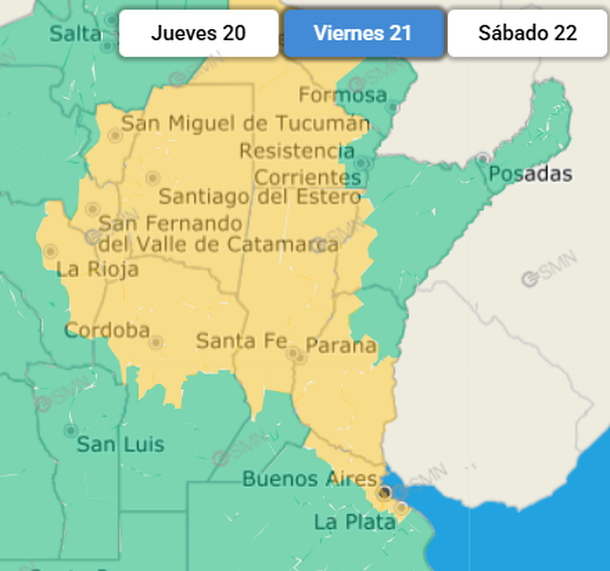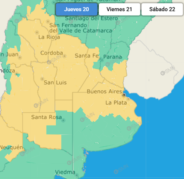 Cabe señalar que el SMN informó que el viernes, durante por la madrugada, habrá tormentas aisladas. Luego, por la mañana, habrá lloviznas y finalmente cesarán las lluvias, dejando un cielo mayormente nublado. En tanto, se advierte por fuertes ráfagas para las primeras horas de esta jornada, que podrían alcanzar los 70 kilómetros por hora.