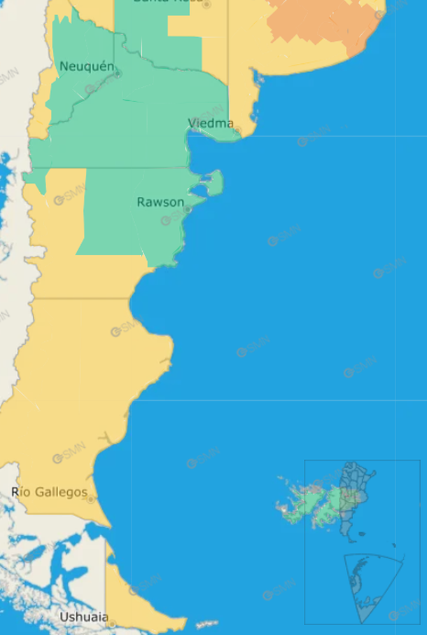 Además, provincias como Mendoza, Neuquén, Santa Cruz y Tierra del Fuego están advertidas por fuertes lluvias.