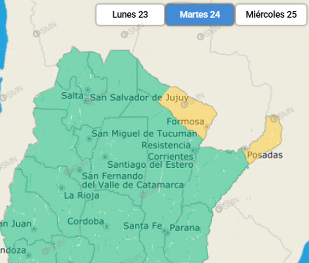 El Servicio Meteorológico Nacional (SMN) activó una alerta amarilla ante la llegada de un frente de tormentas severas. El pronóstico anticipa ráfagas de viento muy intensas y lluvias copiosas en lapsos breves que tendrán lugar este martes en dos provincias argentinas.