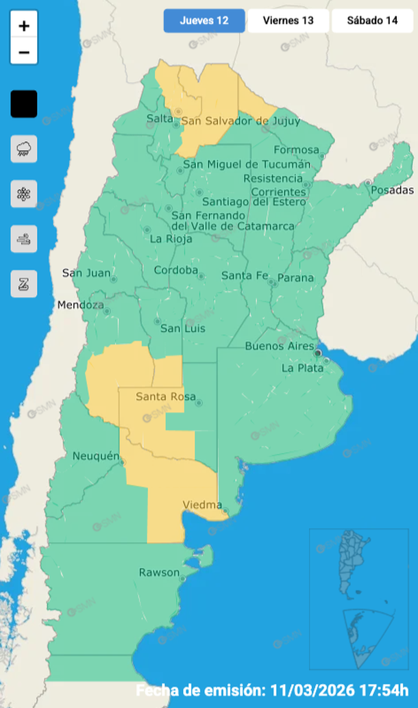 De esta manera, el SMN lanzó una alerta amarilla que afectaba este jueves 12 de marzo a zonas del centro y norte de la Argentina.