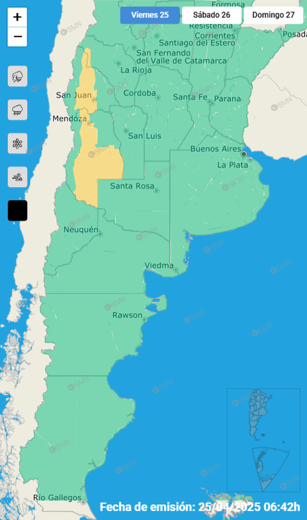 El Servicio Meteorológico Nacional emitió un alerta amarilla para gran parte de la provincia cuyana.