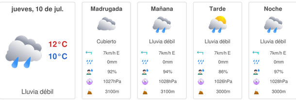 Pero no sería el único día de lluvia durante la semana porque también otros pronosticadores, como Meteored, anuncian la chance de precipitaciones durante la jornada del jueves 10 de julio.